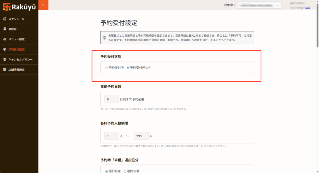 この設定は単なる予約可否の切り替えではなく、店鋪の掲載状態そのものに関わります。